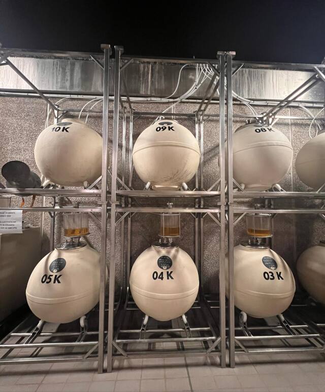 シャワーを浴びた葡萄は発酵前に冷蔵庫で6度まで冷やされる。この作業で葡萄に住みついた虫を除去することができる。