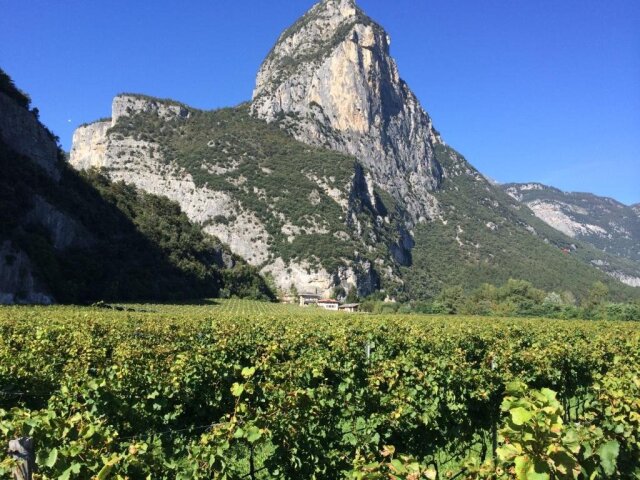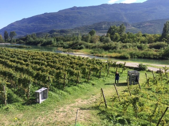 畑は非常に珍しいテロワール。畑の隣にはガルダ湖まで続くサルケ川が流れ、反対側はトレンティーノで一番高いダイン山に挟まれていて、ガルダ湖からの風が吹き抜けます。