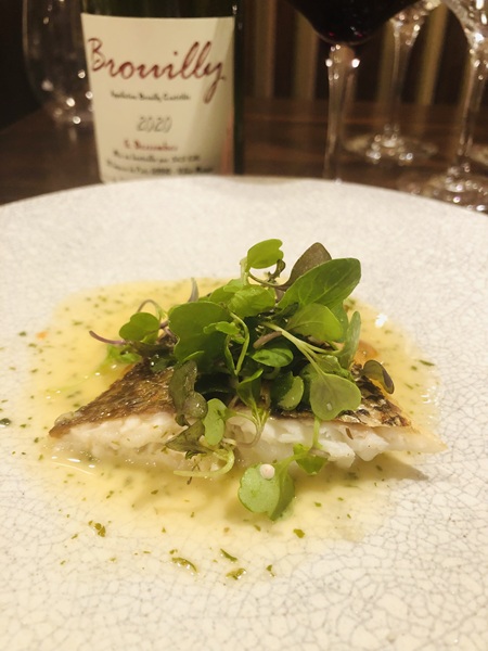 クリュ・ボジョレーに合わせたのは「真鯛のポアレ、ブールブラン」。