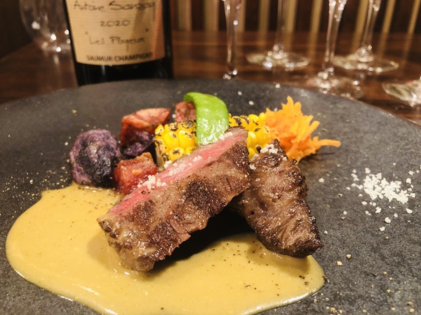 カベルネフランの良い赤で締めくくるので、それ相応の常陸牛。脂身と赤身のバランスが良いイチボをシェフは好んで使ってます。