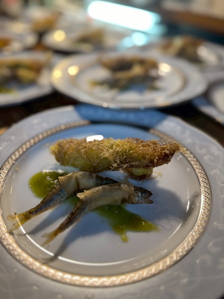 ◯稚鮎のフリットとヤングコーンのバル 梅のソース