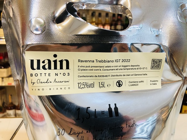 【自然なワインを、楽しく、飲んで持ち歩くバッグワイン】ウアイン NO.3 ラヴェンナ・トレッビアーノ [2023] 1,500ml 【オレンジワイン】